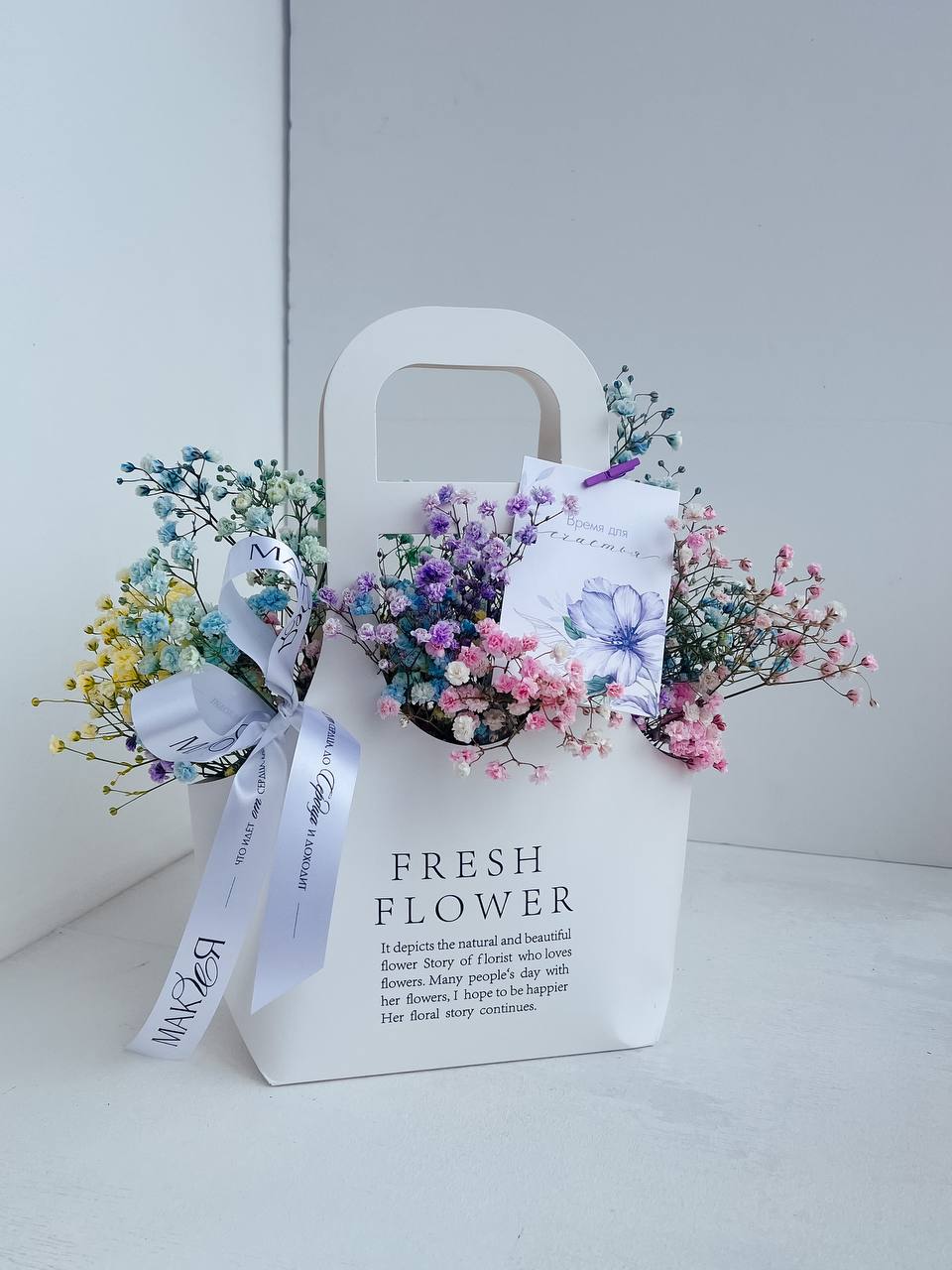 Например, букет из калл, гипсофилы или с большим количеством зелени можно забрать с вечера, следуя инструкции выше он прекрасно сохранится до утра.